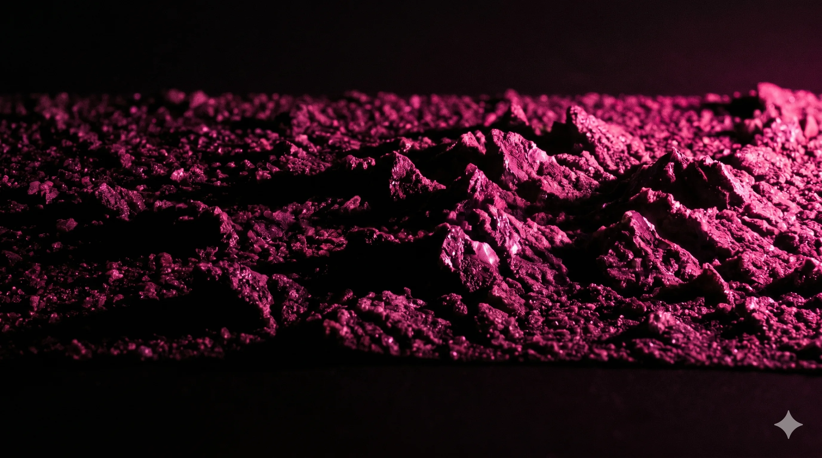 A single mark of pink in a field of black grit.